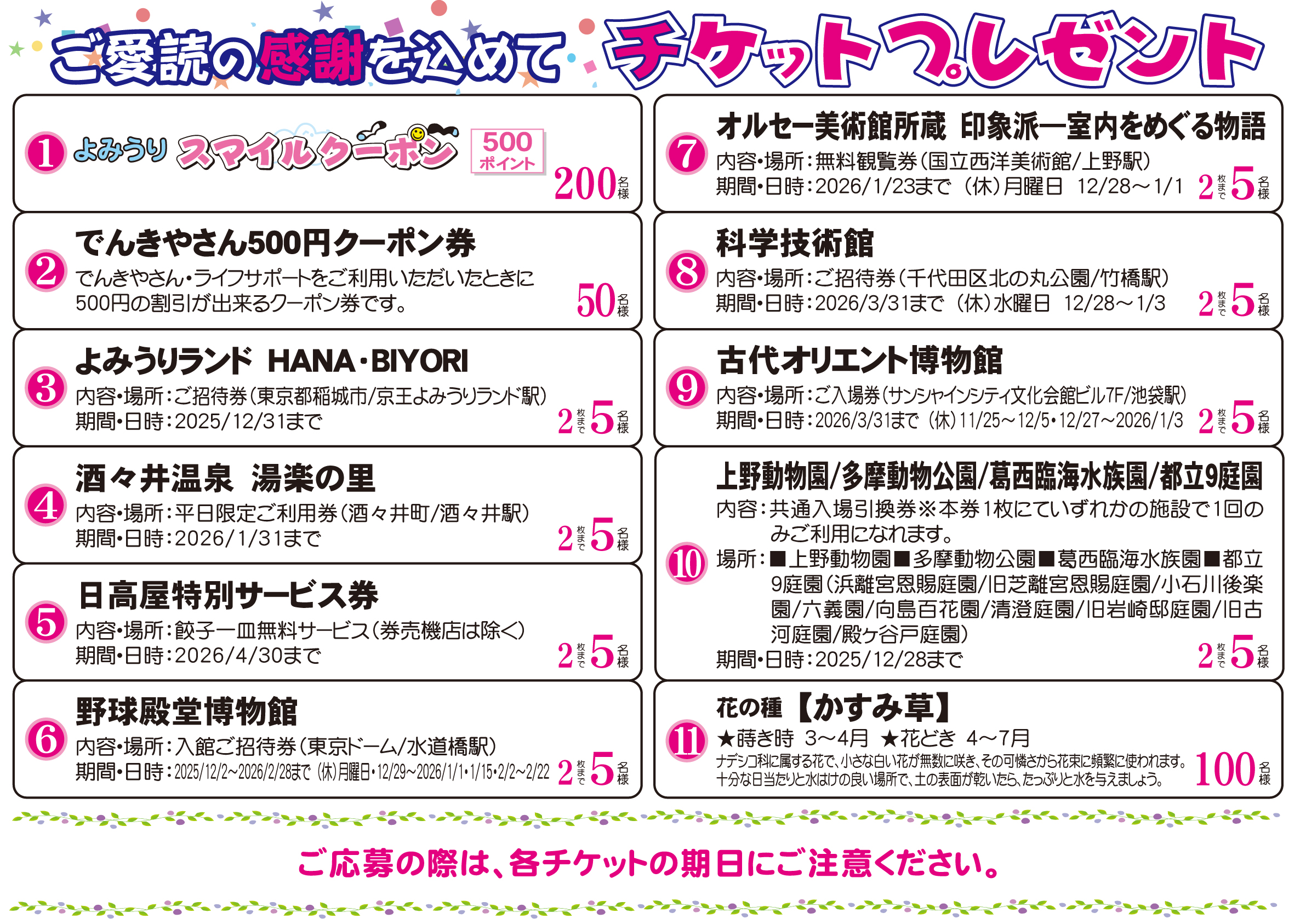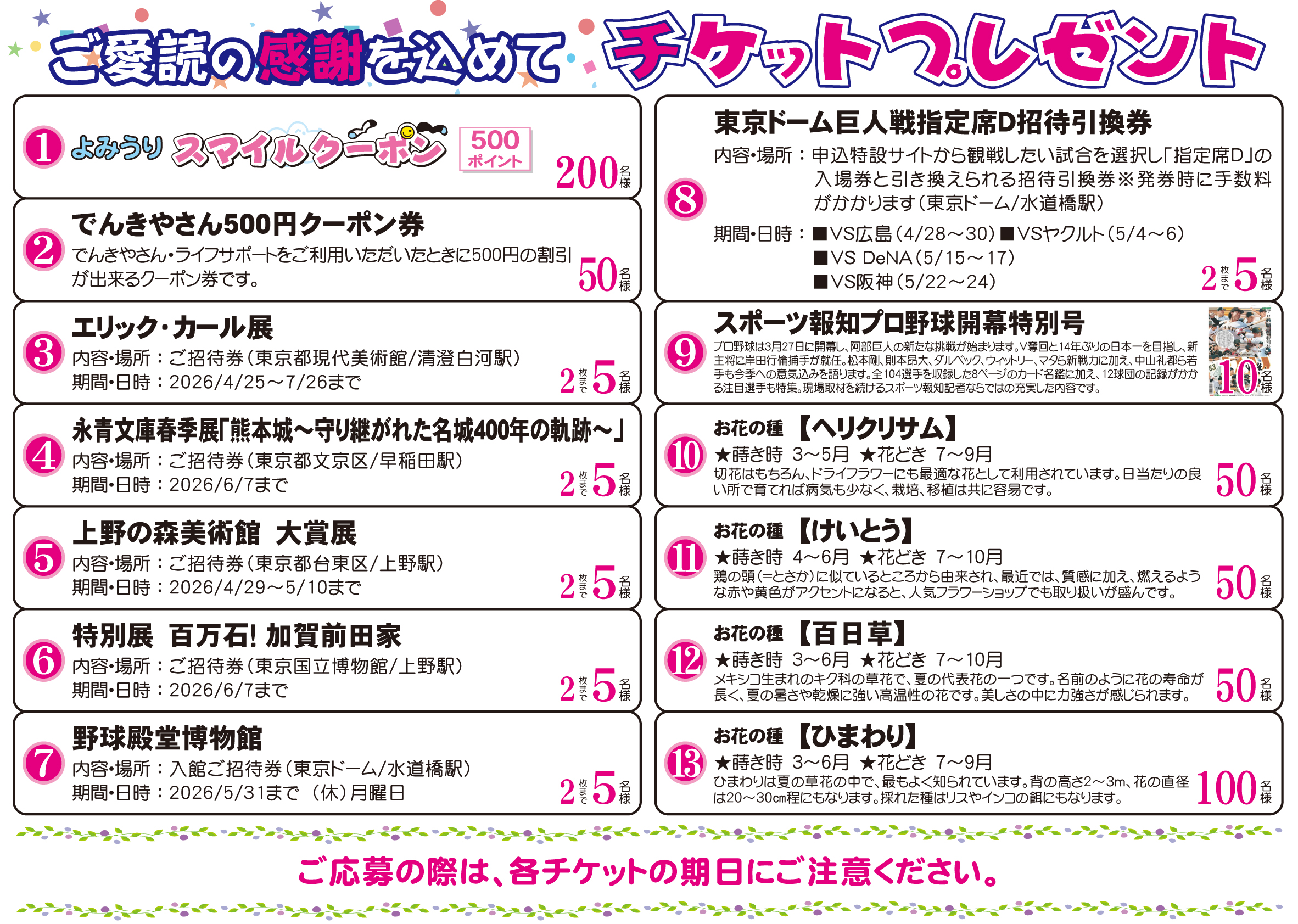 ●公平を期するため、1家族につきご購読紙のプレゼントについて、1度のみとさせていただきます。